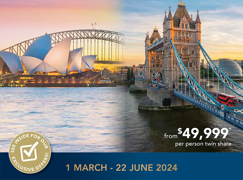 Sydney to London is one of the world’s most iconic sailing adventures, offering a seamless blend of Asian, Middle Eastern and European cities & cultures. With no major oceans to cross, and one jaw-dropping port of call following the next, it’s little wonder that this route makes up the backbone of most extended world cruises, book-ended by the Americas.