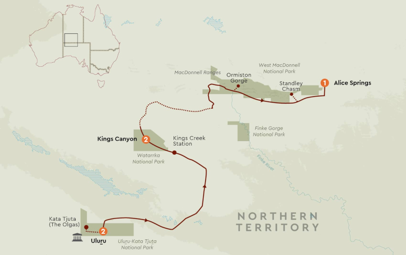 - Visit Kings Canyon for a guided scenic walk and journey through the West MacDonnell Ranges, visiting Standley Chasm and Ormiston Gorge